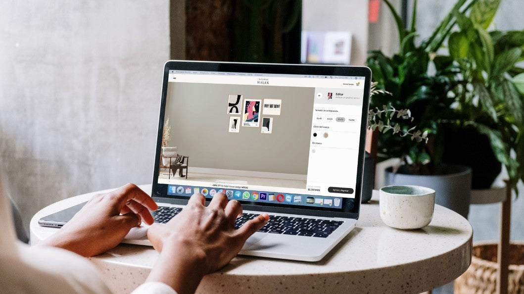 Al momento de personalizar tu diseño puedes elegir el marco que más te guste, el cuadro te lo enviamos enmarcado y listo para colgarse.