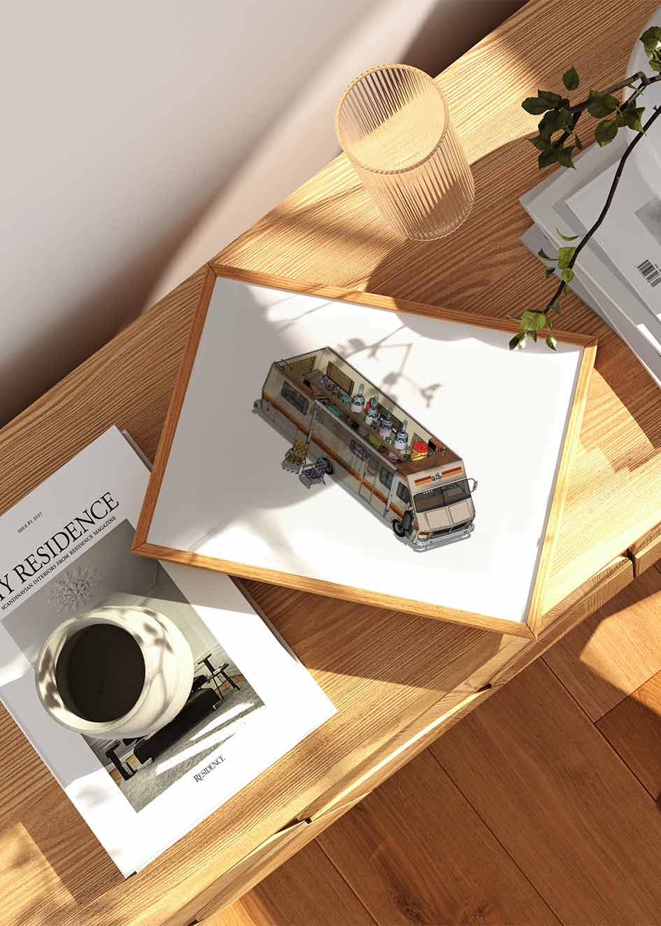 Utilizamos marcos de madera solida cortados con precisión por maquina para la creación de nuestros marcos. Actualmente están disponibles en diferentes acabados de madera, como negro, blanco y madera clara. Además, los marcos tienen caimanes de metal para colgarlos fácilmente.